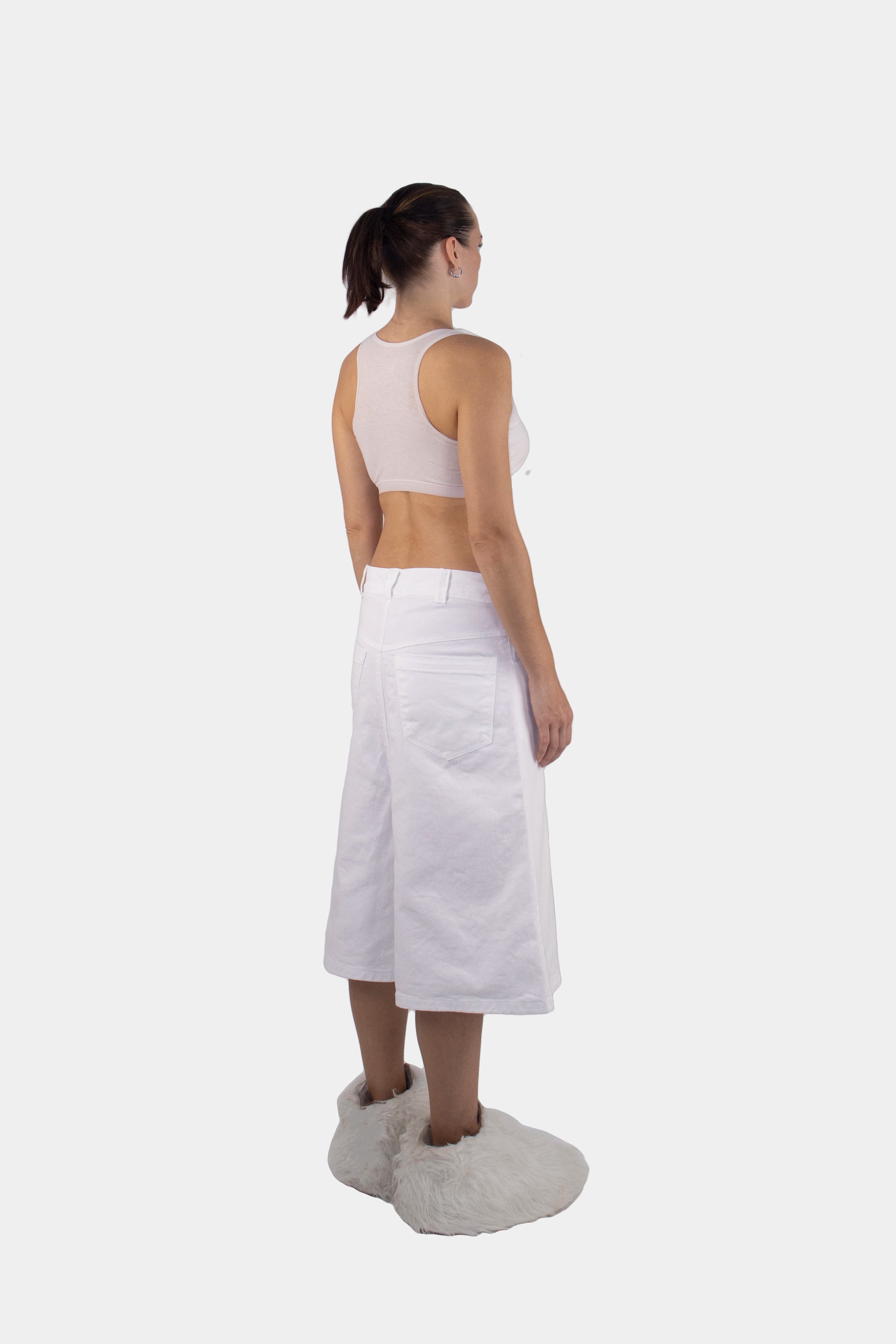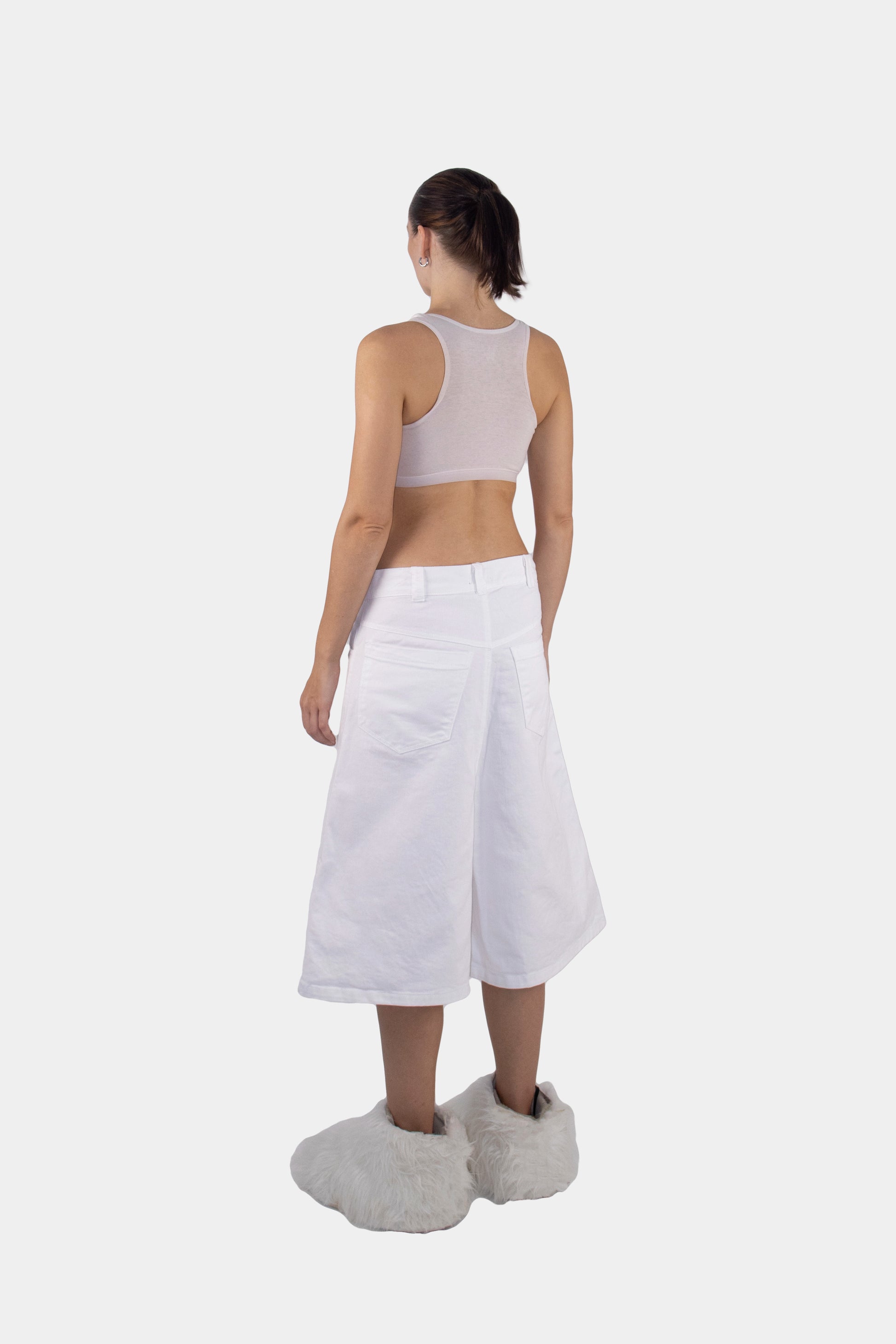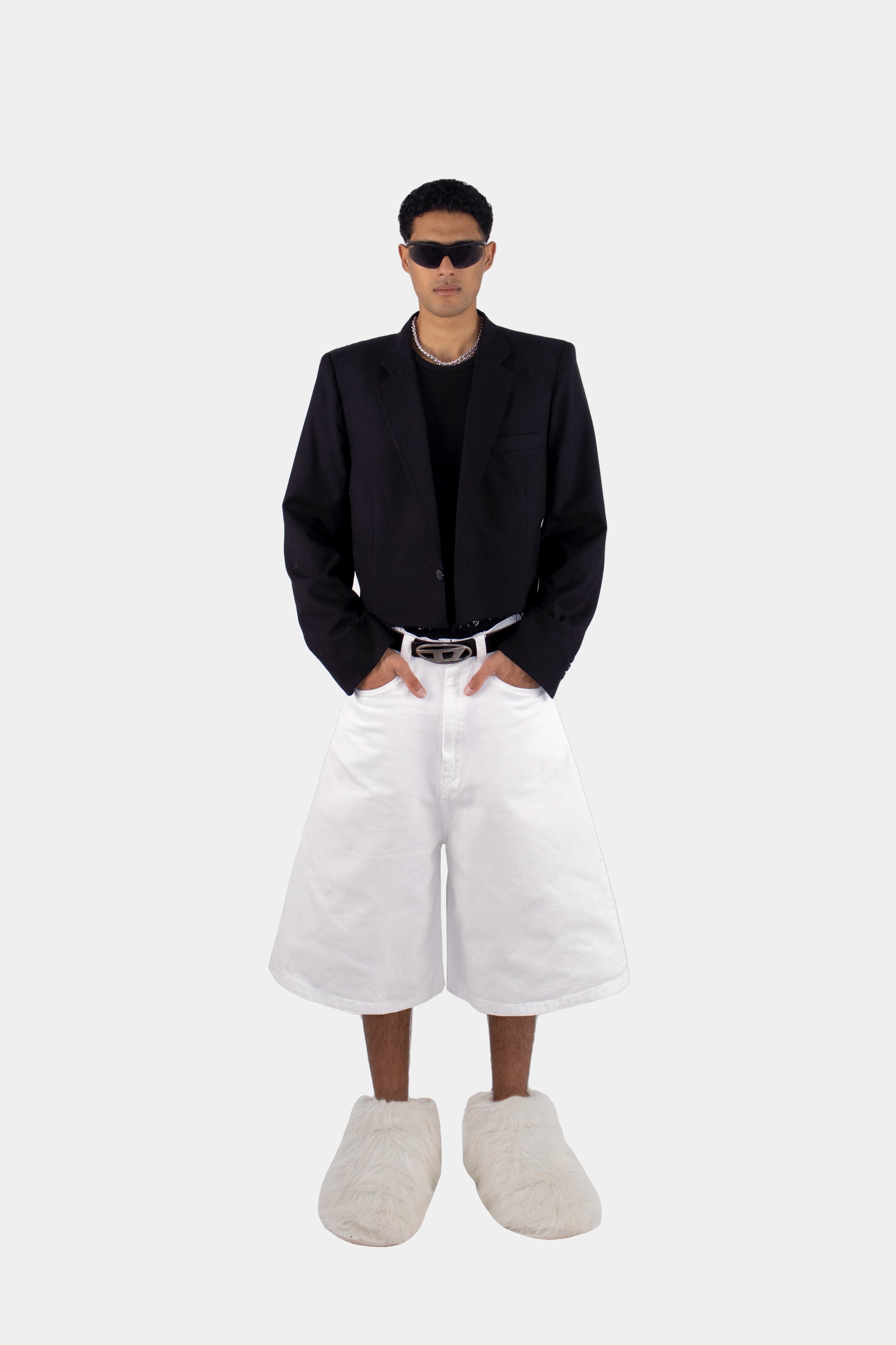 Structured Shorts redefine proportion — rigid lines carving a new outline around movement.